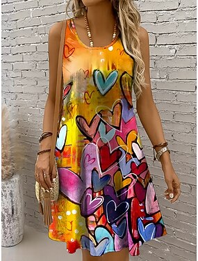 Naisten Mini mekko Kesämekko A linjainen mekko Olkapäältä pois menevä mekko Loma Vapaa-aika Boheemi Pyhäpäivä Hiekkaranta Normaali Sydän Kuvitettu Hihaton Tiukka pyöreä kaula-aukko Keltainen Rubiini