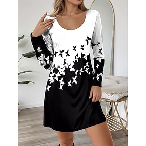 Naisten mini mekko pyöreä kaula-aukko pitkähihaine T-paitamekko Tee-mekko A-linjainen mekko rento päivittäinen säännöllinen istuvuus graafinen perhonen valkoinen vaaleanpunainen sininen purppura