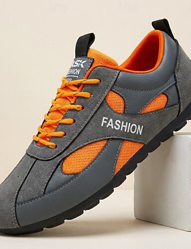 Miesten hengittävät nauhalliset urheilukengät, harmaanoranssit ulkoilukengät juoksuun, kuntoiluun ja aktiiviseen elämäntyyliin