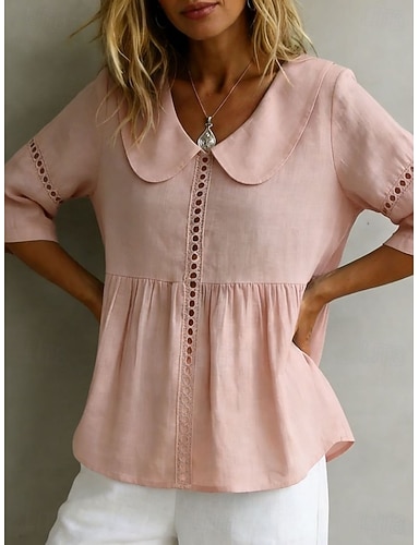 Naisten Midimekko Keinopuuvillainen pellava Väljä mekko Vapaa-aika Päivittäin Loose Fit Tavallinen Puolihiha Kauluskäänne Keltainen Rubiini Purppura Apila Kesä Kevät Syksy