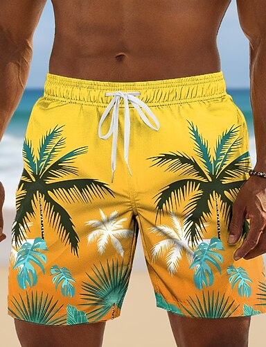 Miesten Kookospuu Kaltevuusväri Trooppiset kasvit Uimahousut Uimapuvut Uimahousut Surffishortsit Keskivyötärö Havaijilainen ulko- Loma Arkikäyttö Sivutaskut Verkkovuori Joustava kiristysnyöri