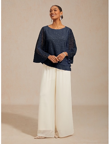 Naisten Pusero Pitsi Topit Pitsi Yhtenäinen väri Tyylikäs Perus Pitkähihainen 3/4 hiha Kello Tiukka pyöreä kaula-aukko Pitkät topit Päivittäin Häävieras Lomavaatteet Laivaston sininen Kesä Kevät Syksy