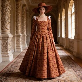 Rokokoo Barokki Tanssiaismekko Kokopitkä Mekot Tanssiaismekko Pitkähihainen Prinsessa Morsius Rusetti Kukka Tanssiaismekko V kaula-aukko Naamiaispuku Naisten Kuninkaallinen Halloween Karnevaali