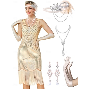 Setti Möly 20s 1920-luku Polvipituinen Mekko Asut Flapper-panta lisävarusteiden kanssa Hihaton Suuri Gatsby Häävieras Paljetti Tupsu V kaula-aukko Naamiaispuku Naisten Joulu Karnevaali Naamiaiset