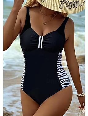 Naisten Uima-asut Yksi kappale Monokini Alushousut Uimapuku Vatsatuki Korkea vyötärö Avoin selkä Loma Ranta-asut Kuvitettu Raidoitettu U kaula-aukko Hihaton Uimapuvut