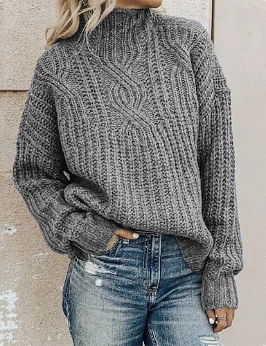 Naisten Neulos Pusero Katutyyli Vapaa-aika Yhtenäinen väri Poolokaulus Kudottu Pitkähihainen Tavalliset topit Neuloa Päivittäin Pyhäpäivä Bile Musta Armeijan vihreä Syksy Talvi