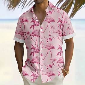Miesten Flamingo Lintu Paita Havaiji paita Button Up paita Lyhythihainen Havaijilainen Loma Pyhäpäivä Ranta-asut Kesä Kevät Sänkyjen avaus 3D-tulostus kauluspaidat Edessä yksi tasku Punastuvan