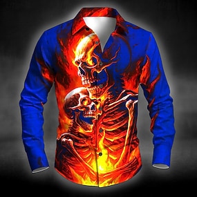 Miesten Pääkallot Liekki Luuranko Paita Button Up paita Pitkähihainen Dark Punk Gothic ulko- Pyhäpäivä Kesä Kevät Sänkyjen avaus 3D-tulostus kauluspaidat Musta 1 Musta