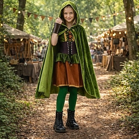 Setti Retro / vintage Keskiaika Renessanssi Mekot Viitta Asut lisävarusteiden kanssa Haltia Ranger Naamiaispuku Tyttöjen Halloween Karnevaali Juhla Naamiaiset Renessanssin messut Leninki Viitta Lis