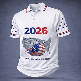4. heinäkuuta 2026 250. Miesten Amerikan lippu Polo Lyhythihainen Poolopaidat Kauluskäänne Vapaa-aika Urheilu- ja treenivaatteet Arki-asut Festivaalivaatteet 3D-tulostus Napit Kesä Sininen Valkoinen