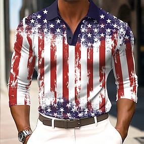 4. heinäkuuta 2026 250. Miesten Amerikan lippu veteraanit Poolopaidat Golf poolopaidat Pitkähihainen Poolopaidat Kaulus Loma Juhla-iltavaatteet Arkikäyttö Vetoketju 3D-tulostus Syystalvi Kevät Sininen