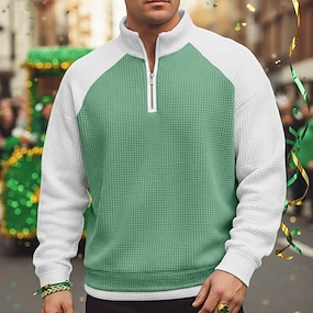 Kuolleiden päivä Miesten Pääkallot Polo Pitkähihainen Poolopaidat Vapaa-aika Tumma ulko- Katu Arki-asut 3D-tulostus Quarter Zip Polo Kevät Syksy Talvi Sininen Ruskea Apila
