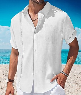Miesten Paita pellava paita Guayabera paita Kesä paita Ranta-asut Button Up paita Tavallinen Loma Curise Musta Valkoinen Laivaston sininen Aprikoosi Lyhythihainen Kauluskäänne Kesä Vaatetus Edess