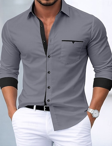 Miesten Paita Pukupaita Napita paita Ei-rautapaita Button Up paita Väripalikka Kausaliteetti Päivittäin Sininen Valkoinen Vaaleanpunainen khaki Pitkähihainen Sänkyjen avaus Kevät 봄 & Syksy Vaatetus