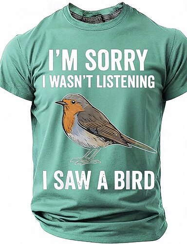 miesten "anteeksi, en kuunnellut, näin linnun" hauska lintubongaus graafinen t-paita lyhythihainen pyöreä pääntie realistinen punarinta luonnonystävä lahja mintunvihreä rento istuvuus merkkivaatteet