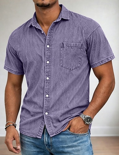 Miesten Demin paita 100 % puuvillahappopesupaita Henley toppi Lyhythihainen Vintage Ahdistunut Kausaliteetti Koti Katu Syystalvi Kesä Kevät Musta Vaaleanpunainen Vaalean vihreä Harmaa Vaalean sininen