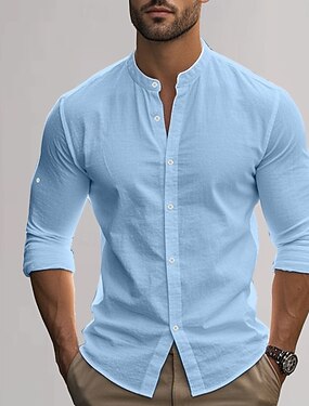 Miesten Puuvillainen pellava paita Tavallinen Loma Musta Valkoinen Khaki Tumman harmaa Pitkähihainen isoisän kaulus Vaatetus