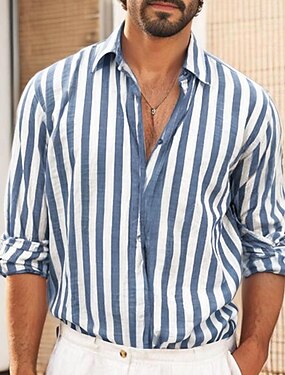 Miesten Paita Pellava paita Kesä paita Rento paita Rantapaita Puuvillainen paita Raita Loma Havaijilainen Musta Punastuvan vaaleanpunainen Rubiini Taivaan sininen Pitkähihainen Sänkyjen avaus