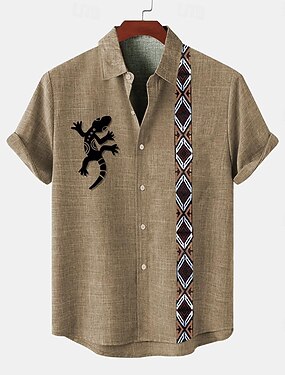 Miesten Pellava paita Rento paita Puuvillainen pellava paita Button Up paita Eläinkuvioinen Loma Arki-asut Valkoinen Tumma laivastonsininen Taivaan sininen Khaki Lyhythihainen Kauluskäänne Kaikki