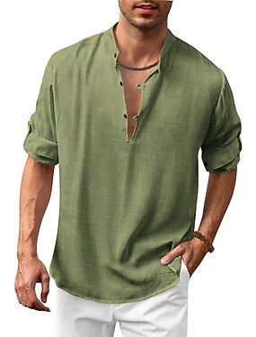 Miesten Paita Pellava paita Popover paita Kesä paita Ranta-asut Band kauluspaita Tavallinen Loma Curise Punastuvan vaaleanpunainen Sininen Armeijan vihreä Pitkähihainen Henley Kevät kesä Vaatetus