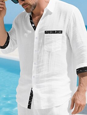 Miesten Paita Pellava paita Popover paita Tavallinen Loma Kausaliteetti Musta Valkoinen Laivaston sininen Sininen Pitkähihainen Kaulus Kesä Kevät Vaatetus Tasku