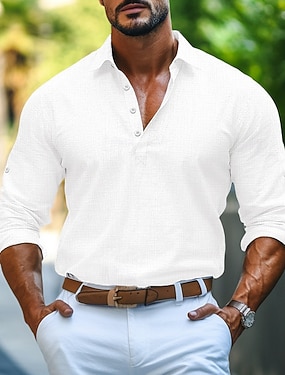 Miesten Paita pellava paita Popover paita Kesä paita Ranta-asut Tavallinen Kausaliteetti Päivittäin Musta Valkoinen Vaalean sininen Pitkähihainen Kaulus Kevät kesä Vaatetus