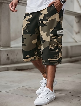 Miesten Lasten shortsit Caprihousut Camo Shortsit Kesähousut Kurenauha Joustava vyötärö Monitasku Armeijatyyli Mukavuus Käytettävä Vasikka-Length ulko- Urheilu Päivittäin Muoti Vapaa-aika Khaki