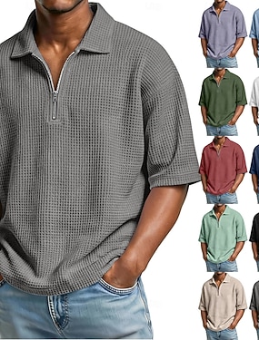 Miesten Vohveli poolopaidat Zip Polo Kausaliteetti Pyhäpäivä Neljänneksen postinumero Lyhythihainen Muoti Perus Tavallinen Neljänneksen postinumero Kesä Kevät Normaali Musta Valkoinen Laivaston