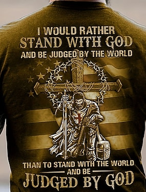 Miesten Kuvitettu Risti Usko Lippukuvio T-paita Christian T-paidat Lyhythihainen T-paita 3D-tulostus Tiukka pyöreä kaula-aukko Paita Vintage Muoti Suunnittelija ulko- Päivittäin Urheilu Keltainen