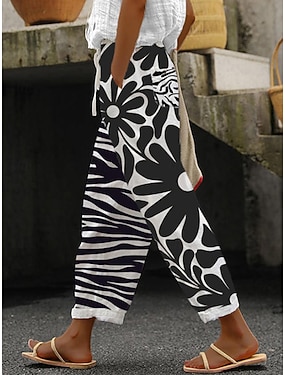Naisten Keinopuuvillainen pellava Kesähousut Housut Rento arki Täyspitkä Kukka Skottiruutukuvio Kurenauha Sivutaskut Katkaistu Hengitettävyys Mukava Joustamaton Bile Viikonloppu Musta Valkoinen Kes