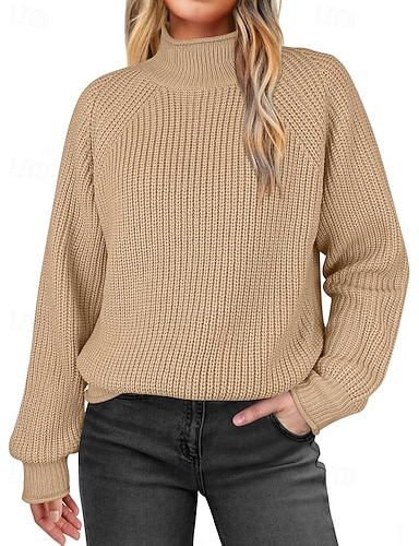 Naisten Neulos Pusero Katutyyli Vapaa-aika Yhtenäinen väri Kaapeli Poolokaulus Kudottu Pitkähihainen Tavalliset topit Neuloa Päivittäin Pyhäpäivä Bile Khaki Kahvi Syksy Talvi