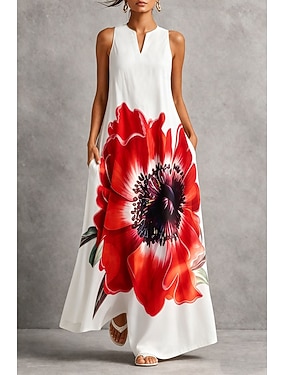 Naisten Midimekko Kesämekko A linjainen mekko Slip Mekko Laskostettu mekko Loma Vapaa-aika Boheemi Hiekkaranta Deitti Normaali Kukka Kuvitettu Hihaton U kaula-aukko Punastuvan vaaleanpunainen Rubiini