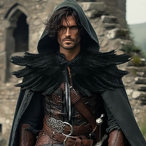Retro / vintage Keskiaika Renessanssi Viitta Shaalit Haltia Feather Naamiaispuku Miesten Sukupuolineutraali Fantasia Halloween Karnevaali Suoritus LARP Ren Faire Aikuisten Shaali