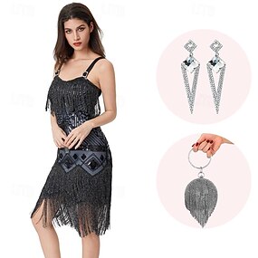 Retro / vintage Möly 20s 1920-luku Mekko Cosplay-Asut Asut Suuri Gatsby Häävieras Paljetti Tupsu Naamiaispuku Naisten Joulu Halloween Karnevaali Halloween Juhlat Häävastaanotto Aikuisten 1 Pari