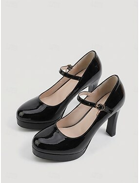 elegantit patentoidut mustat mary jane -korkokengät - monipuoliset naisten jalkineet toimistosta iltaan, paksulla kantapäällä ja nilkkahihnalla
