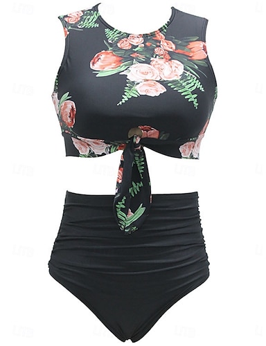 Naisten bikini 2-osainen uimapuku kourallinen ylöspäin hoikka selkä avoin lomaranta vaatteet kukallinen V-kaula sleeveless uimapuvut