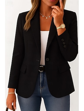 Naisten Bleiseri Hengittävä Mukava Napit Tasku Vapaa-aika Tavallinen Toimisto Katu Kausaliteetti Arki-asut Yksirivinen Normaali Sänkyjen avaus Normaali Pitkähihainen Päällysvaatteet Musta Valkoinen