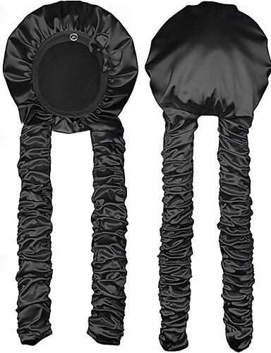 Lämpöä kestävä satiinipäähine nukkumiseen, liukumaton unipäähine pitkillä kiharrusnauhoilla lettejä varten &pitkät hiukset