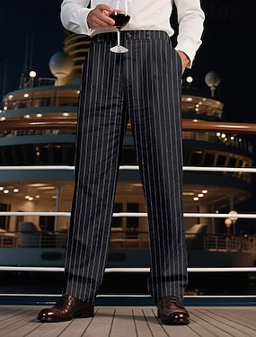Miesten Puvunhousut Pellavahousut Housut Kesähousut Roikkuvat housut Tasku Suora jalka Raidoitettu Mukavuus Hengittävä Täyspitkä Loma Päivittäin Pyhäpäivä Loma Havaijilainen Musta Valkoinen