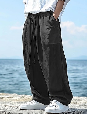 Miesten Tencel-pellavahousut Housut Kesähousut Rantahousut Kurenauha Tasku Joustava vyötärö Tavallinen Mukavuus Hengittävä Täyspitkä Päivittäin ulko- Hiekkaranta Loma Muoti Musta Valkoinen Joustamaton