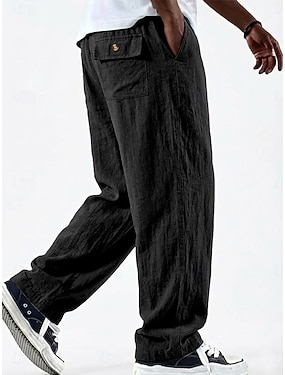 Miesten Pellavahousut Housut Kesähousut Rantahousut Joustava vyötärö Sivupainike Suora jalka Tavallinen Mukavuus Hengittävä Täyspitkä Päivittäin Pyhäpäivä Hiekkaranta Muoti Klassinen tyyli Musta
