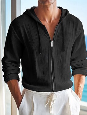 Miesten Paita Kesä paita Rento paita Rantapaita Tavallinen Kausaliteetti Päivittäin Musta Valkoinen Laivaston sininen Ruskea Pitkähihainen Hupullinen Kesä Kevät Vaatetus Sulkea jnk vetoketju