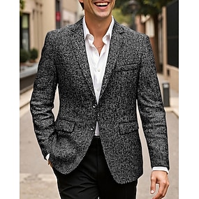 Miesten Blazer-takki Tweed bleiseri Lovikaulus Muoti Klassinen Vapaa-aika Yhtenäinen Blazer Tweed-bleiseri Musta Valkoinen Ruskea Räätälöity istuvuus Yksiriviset kolme nappia