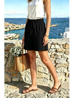 Naisten Hame setit Bolero Keinopuuvillainen pellava Lyhythihainen Paitapuserokaula-aukko Yhtenäinen väri Tyylikäs Muoti Katutyyli Kausaliteetti Päivittäin ulko- Musta Valkoinen Keltainen Kesä Loose