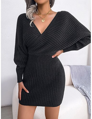 Naisten Neuletakki Seksikäs Yhtenäinen väri Paksu V kaula-aukko Kudottu Pudota lapa Pitkähihainen Tunika Neuloa Koti Päivittäin Punainen Ruskea Musta Syksy Talvi