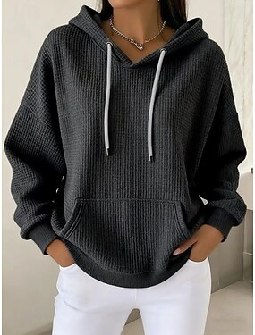 Naisten Pullover-huppari Tasku Tavallinen Vapaa-aika Pitkähihainen Hupullinen Tavalliset topit Sininen Musta Valkoinen Punastuvan vaaleanpunainen Fuksia Kevät Syksy Talvi