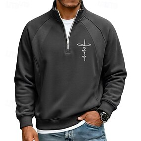 Miesten Pullover-huppari Zip Polo Loma Katu Vetoketju Pitkähihainen Muoti Perus Tavallinen Muoti 봄 & Syksy Kaikki vuodenajat rennosti istuva Musta Valkoinen khaki Tumman harmaa Pullover-huppari