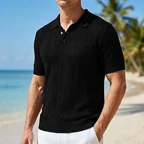Miesten Cable Knit Polo Golf poolopaidat Kausaliteetti liiketoiminta Kauluskäänne Ribbineulospikeekaulus Lyhythihainen Perus Moderni Väripalikka Pintakäsitelty Jakardi Napit Kevät Kevät kesä Kaikki