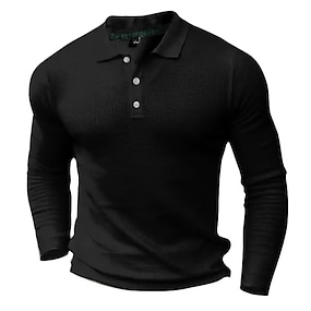 Miesten Vohveli poolopaita Golfpaita Kausaliteetti Pyhäpäivä Kauluskäänne Pitkähihainen Muoti Perus Tavallinen nappi Vintage Kesä Normaali Musta Valkoinen Harmaa Vohveli poolopaita