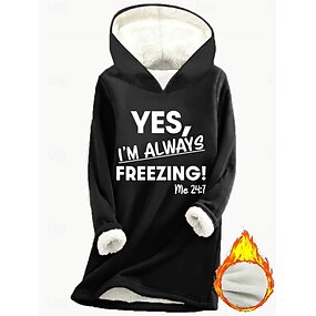 Naisten Pullover-huppari Kuvitettu Kirjain Lämmin Vapaa-aika Pitkähihainen Hupullinen Pitkät topit Katu Arkikäyttö Napit Painettu Musta Tumma vaaleanpunainen Sininen Harmaa Syksy Talvi
